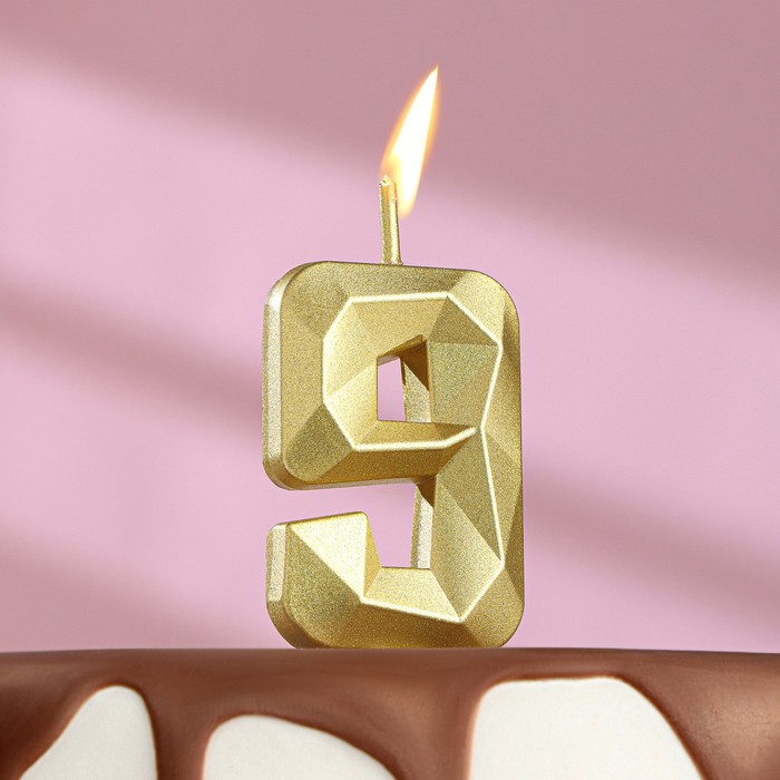 Свеча в торт на шпажке «Алмаз», цифра "9", золотая, 4,8х2,6 см