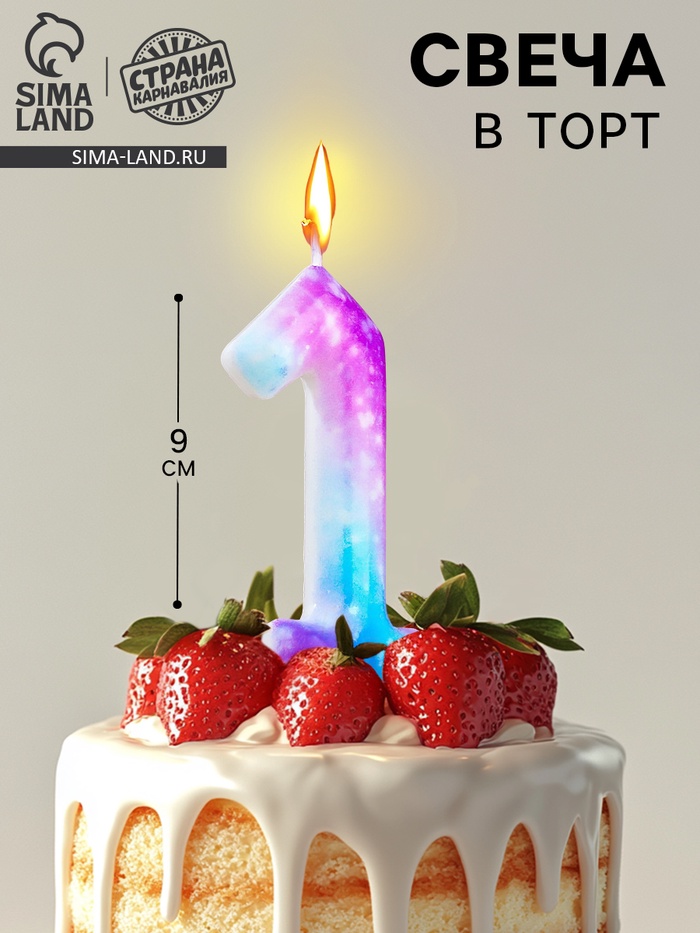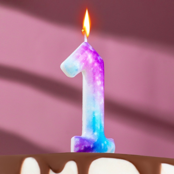Свеча в торт на шпажке "Галактика", цифра 1, 9 см, ГИГАНТ