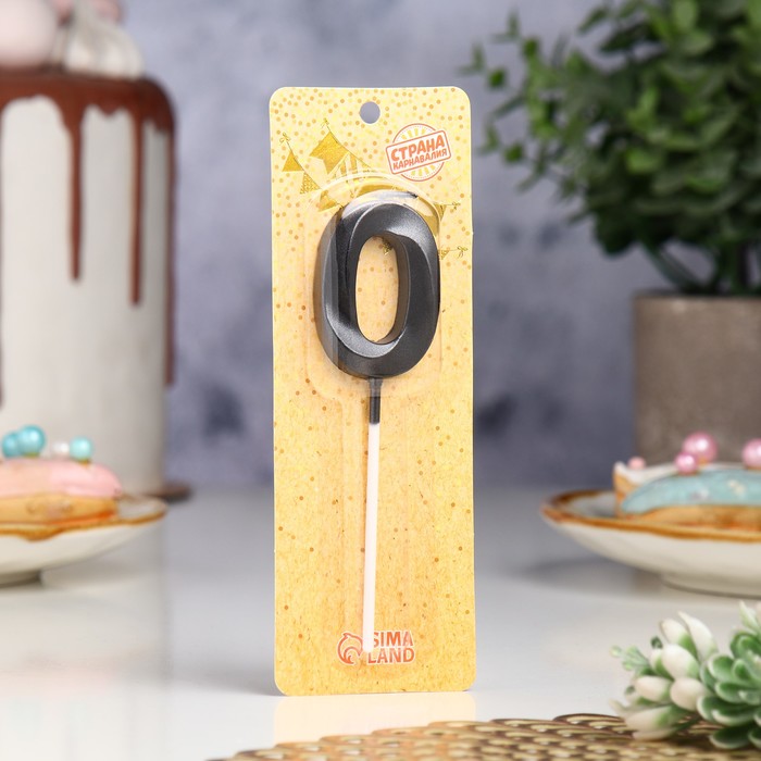 Свеча в торт на шпажке «‎Грань», цифра "0", черная, 5 см