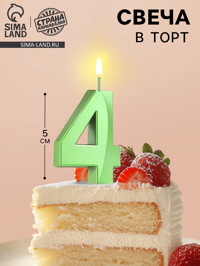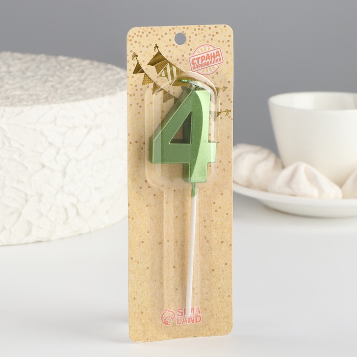 Свеча в торт на шпажке «‎Грань», цифра "4",изумруд, 5 х 3.5 см