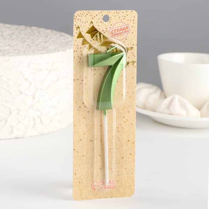 Свеча в торт на шпажке «‎Грань», цифра "7",изумруд, 5 х 3.5 см