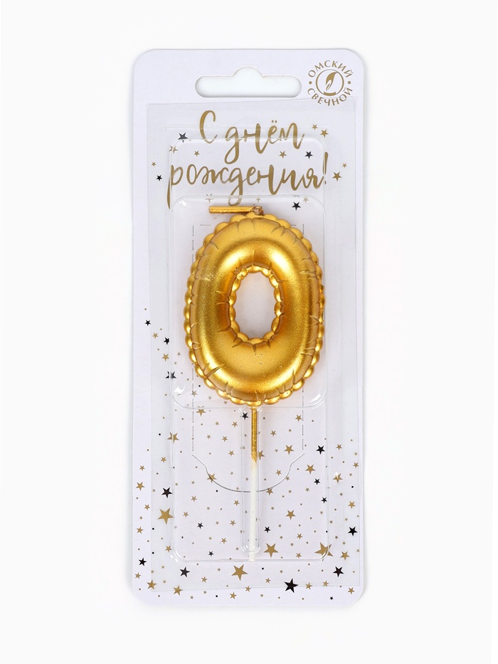 Свеча в торт на шпажке «Воздушная цифра 0», золото