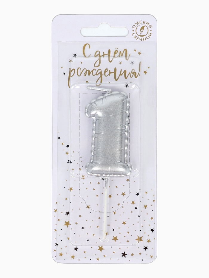 Свеча в торт на шпажке «Воздушная цифра 1», серебро