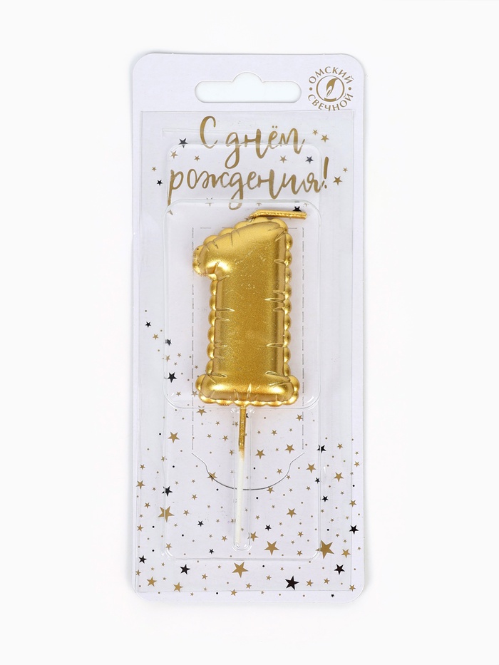 Свеча в торт на шпажке «Воздушная цифра 1», золото