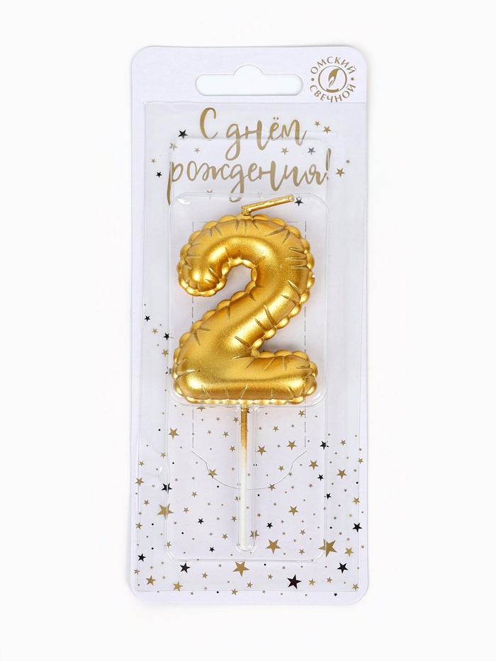 Свеча в торт на шпажке «Воздушная цифра 2», золото