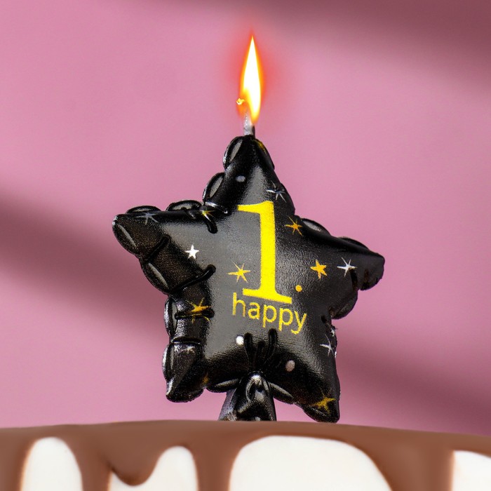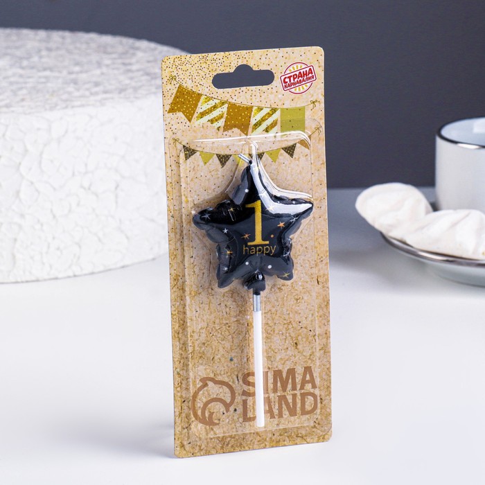 Свеча в торт на шпажке "Воздушный шарик.Звезда", цифра 1, 11х5 см, черная с золотом