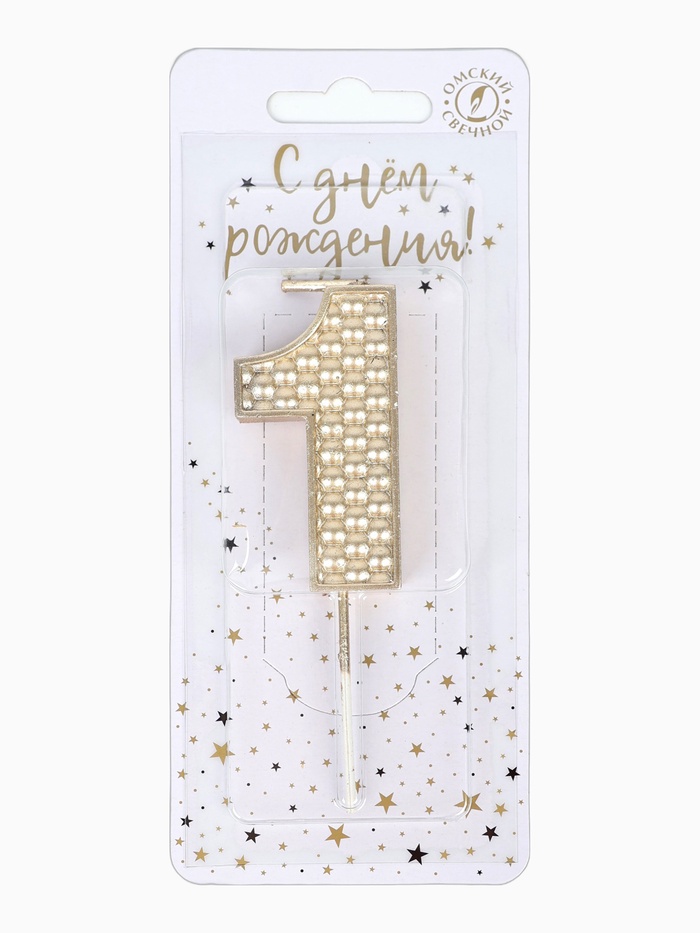 Свеча в торт на шпажке «Жемчужная», цифра 1, шампань