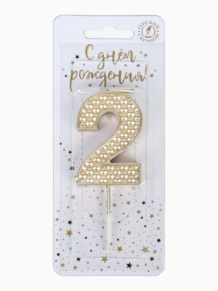 Свеча в торт на шпажке «Жемчужная», цифра 2, шампань