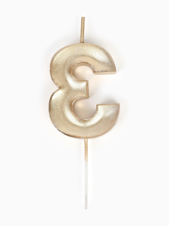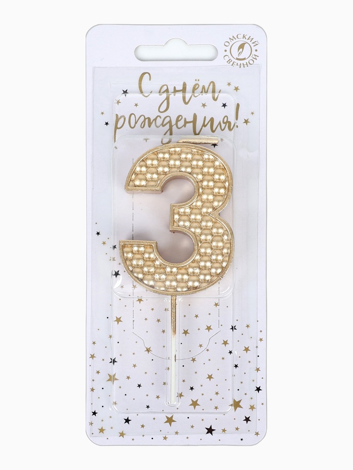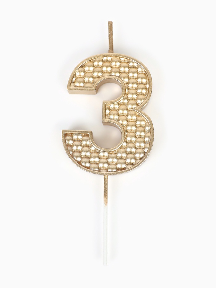 Свеча в торт на шпажке «Жемчужная», цифра 3, шампань