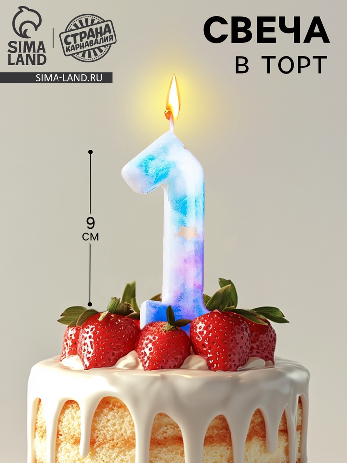 Свеча в торт на шпажке "Звездопад", цифра 1, 9 см, ГИГАНТ