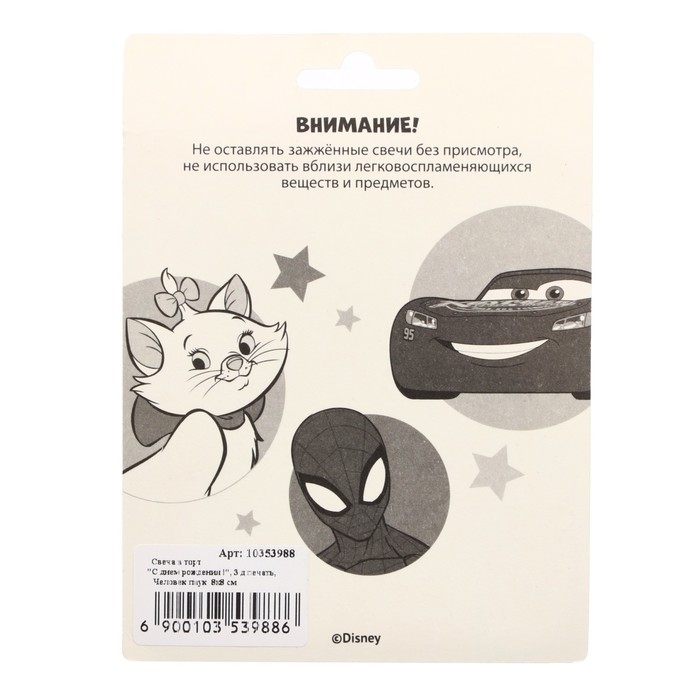 Свеча в торт "С Днем Рождения!", 3-д печать, Человек-паук, 8×8 см