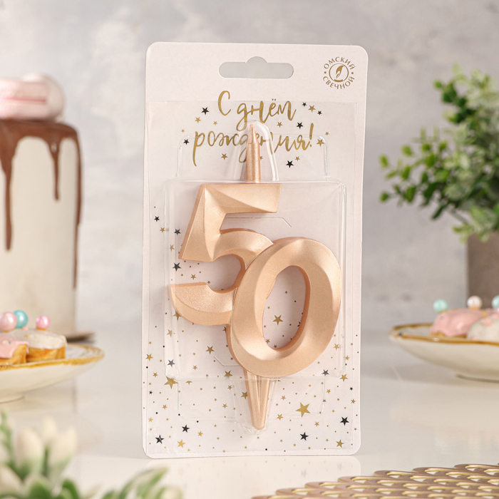 Свеча в торт «Юбилейная», цифра 50, 10 см, шампань