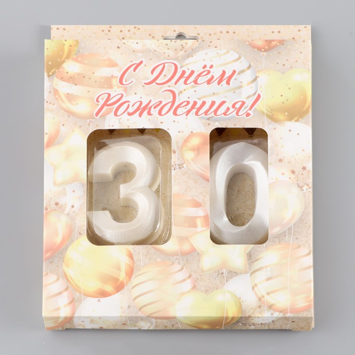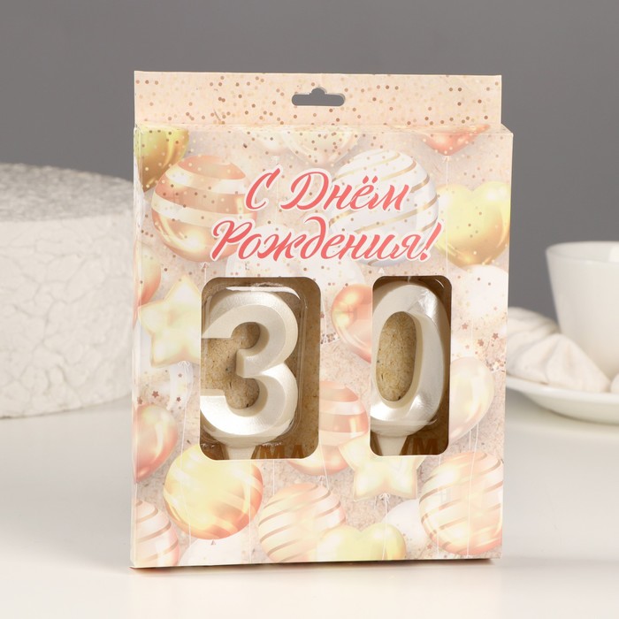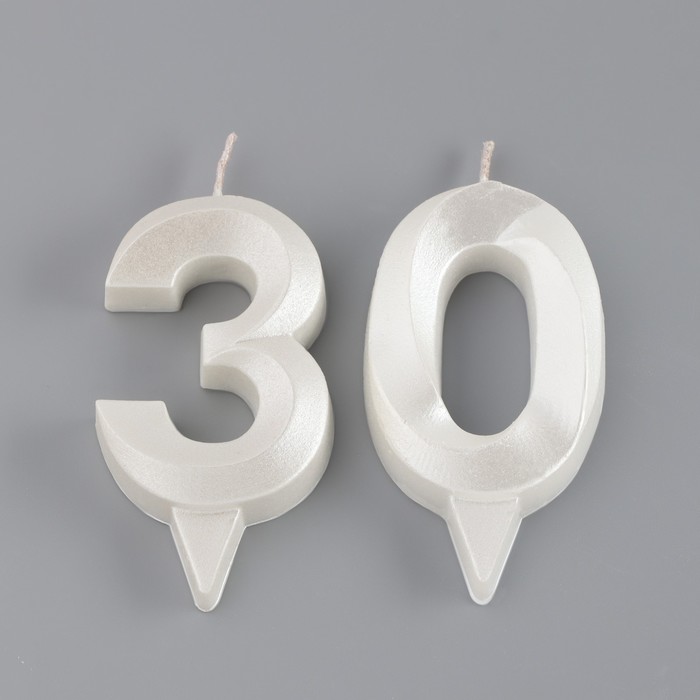 Свеча в торт юбилейная «Грань» (набор 2 в 1), цифра 30, жемчужный, 6.5 см