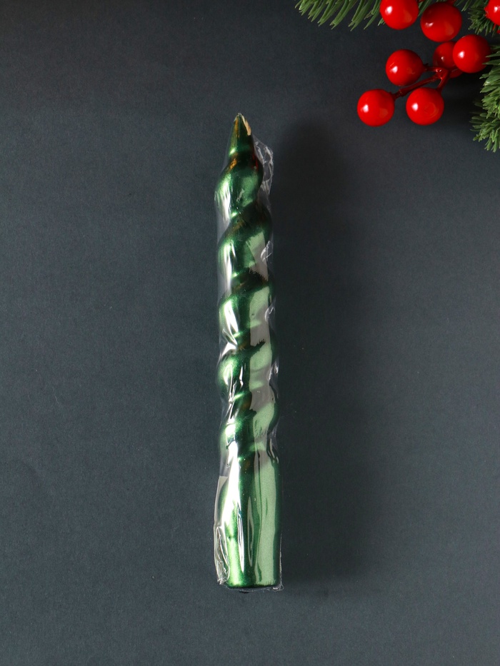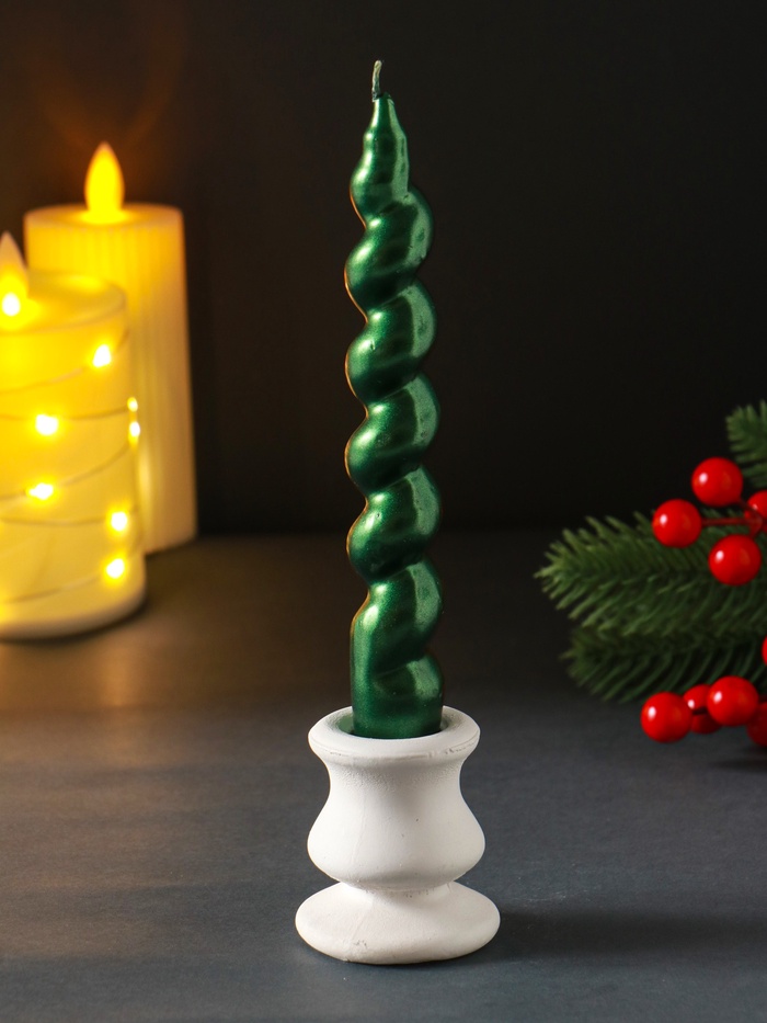 Эта зелёная витая свеча — готовое решение для создания уютной атмосферы. Её классическая форма и насыщенный лаковый цвет придают интерьеру законченный вид без лишних усилий.