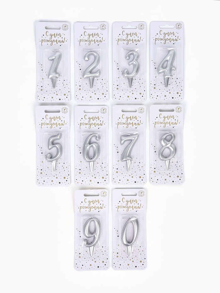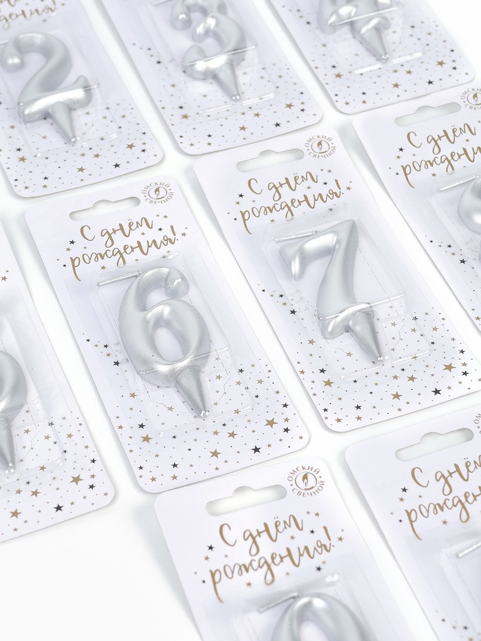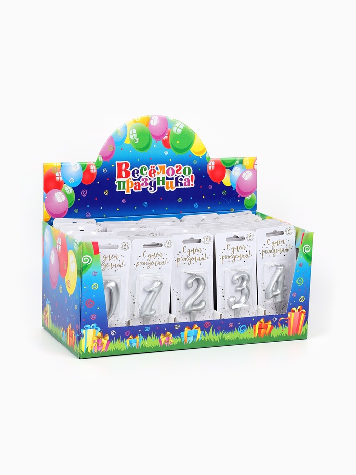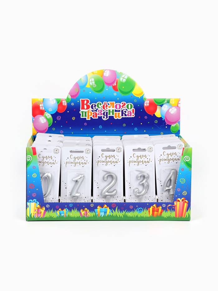 Свечи для торта цифры «Серебряные», 50 штук в шоу-боксе