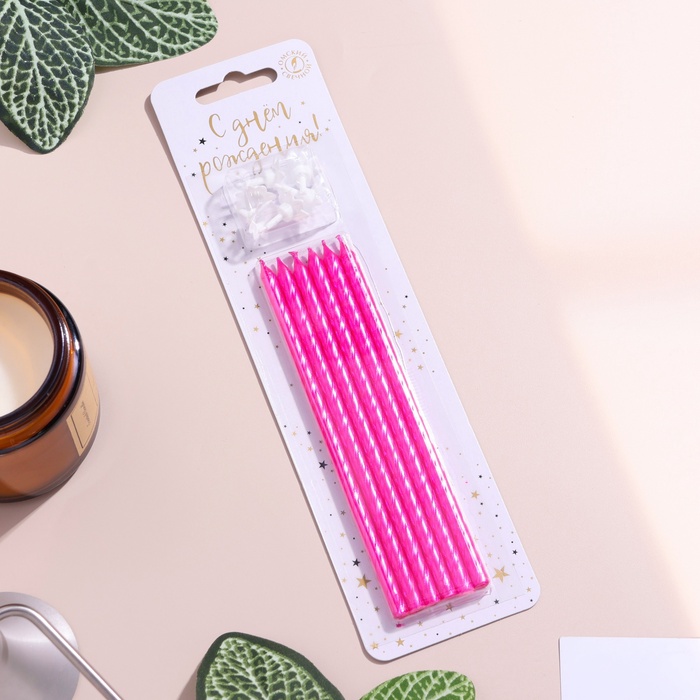 Свечи для торта «Классические» с подставкой, 13 см, 6 шт., розовые