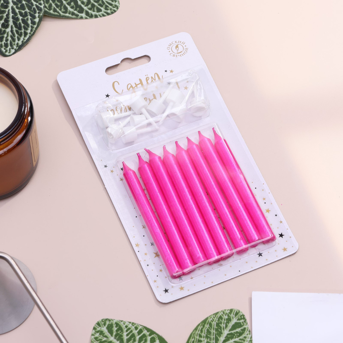 Свечи для торта «Манхеттен», 9 см, 8 шт., 24 мин, розовый металлик