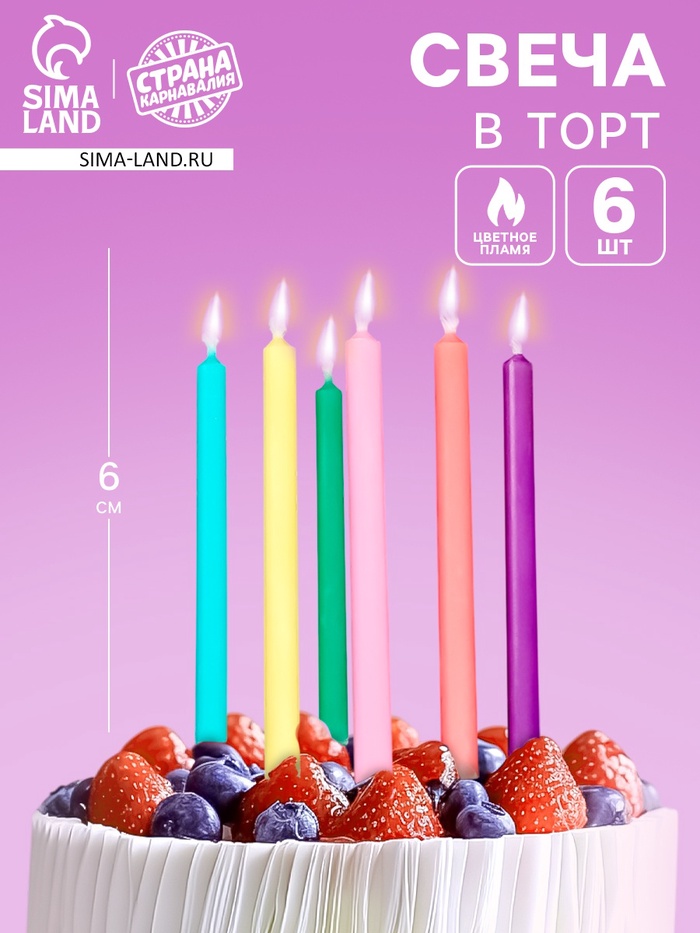 Свечи для торта - это неотъемлемый атрибут праздника. Набор свечей станет прекрасным украшением торта и других кондитерских изделий по случаю дня рождения, юбилея и любого другого торжества. Украсьте угощение стильными свечами, чтобы сделать особенный день ещё более ярким и незабываемым. Свечи укомплектованы пластиковыми держателями для удобства размещения в торте или другом кондитерском изделии. Изготовлены из высокоочищенного пищевого парафина, который не влияет на вкусовые качества блюд, а удобная упаковка помогает сохранять свечи при длительном хранении и транспортировке.
