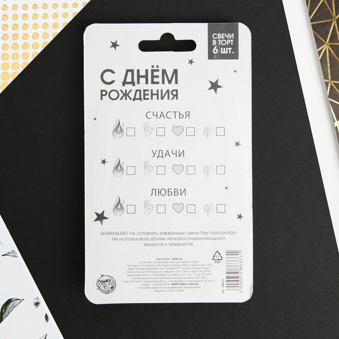 Свечи для торта «С днем рождения», 6 шт., 9×0.8 см
