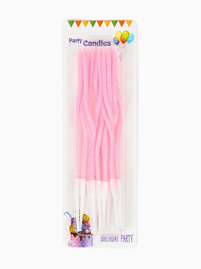 Свечи для торта "Серпантин" 10 штук, блестящий розовый