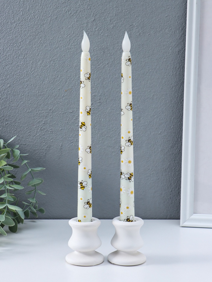 Свечи светодиодные "Античные. Ромашки и пчёлки" набор 2 шт 2хААА 2х2х27,5 см 2,5х7х32 см