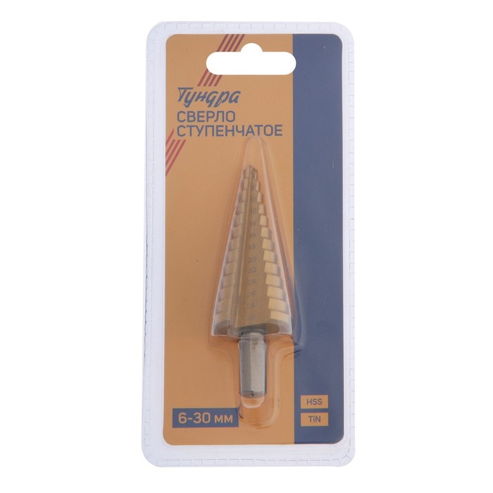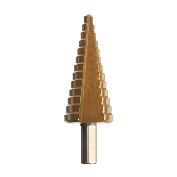 Ступенчатое сверло с трёхгранным хвостовиком предназначено для работ с дрелью.