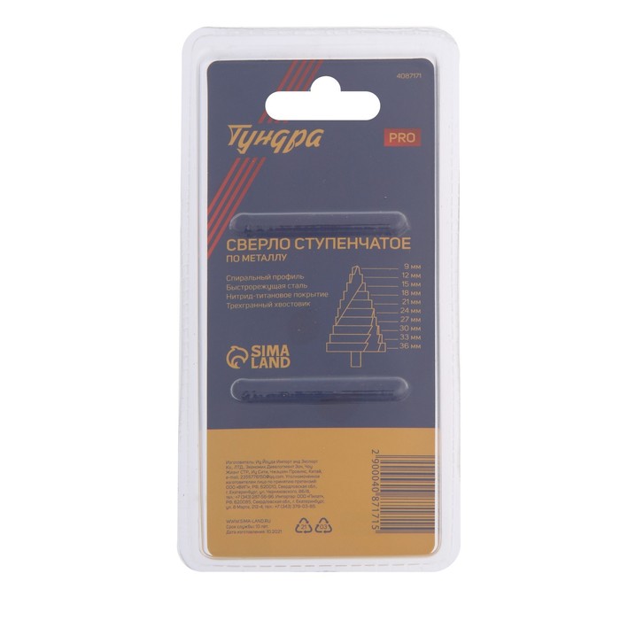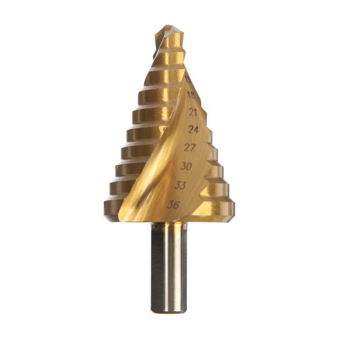 Ступенчатое сверло с трёхгранным хвостовиком предназначено для работ с дрелью.