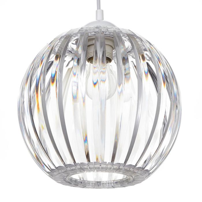 - Минималистичный дизайн: прозрачный пластиковый плафон в форме шара добавляет интерьеру легкость и современность.