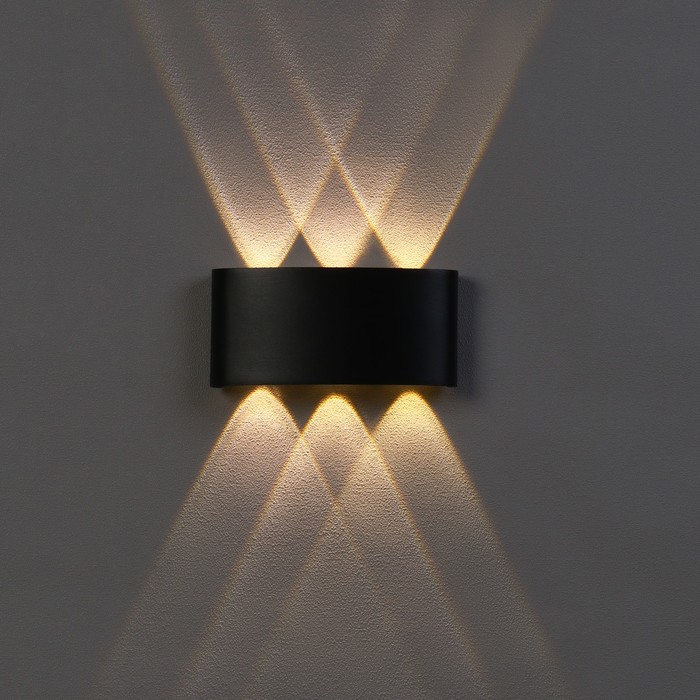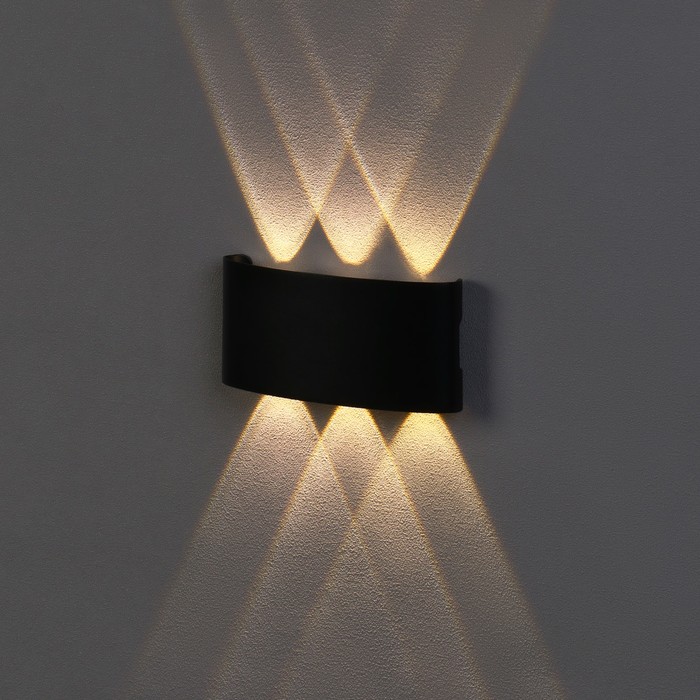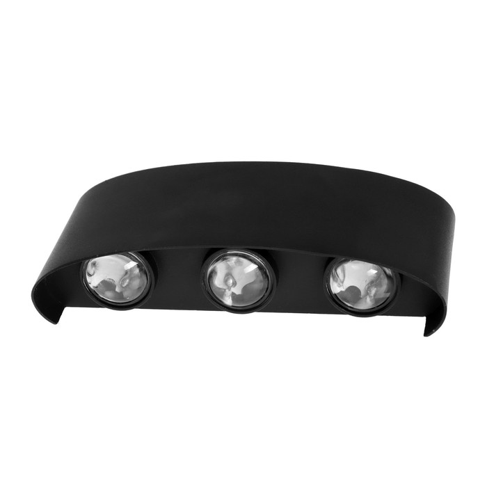 Светильник фасадный «Полусфера», 6 Вт, 3000К, 3 луча, IP65, 220 В, металлический корпус, чёрный, свечение тёплое белое