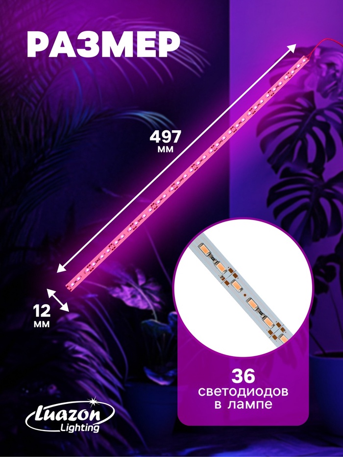 Светильник линейка, для растений, 0.5 м, 7 Вт, SMD5630, 36 led, ФИТО, 12 В