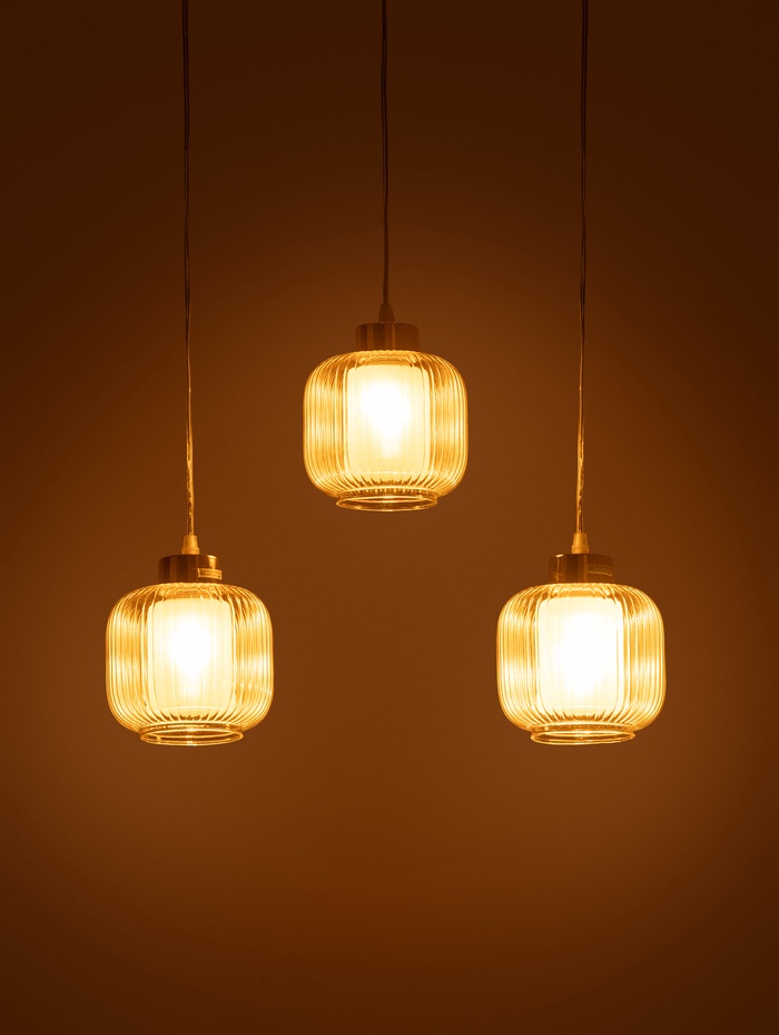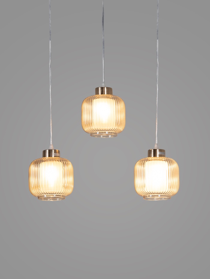 Светильник подвесной ЭкономСвет 10298/3GD, 3×40 Вт, E27, 61×15×18×70 см, золотой, янтарный