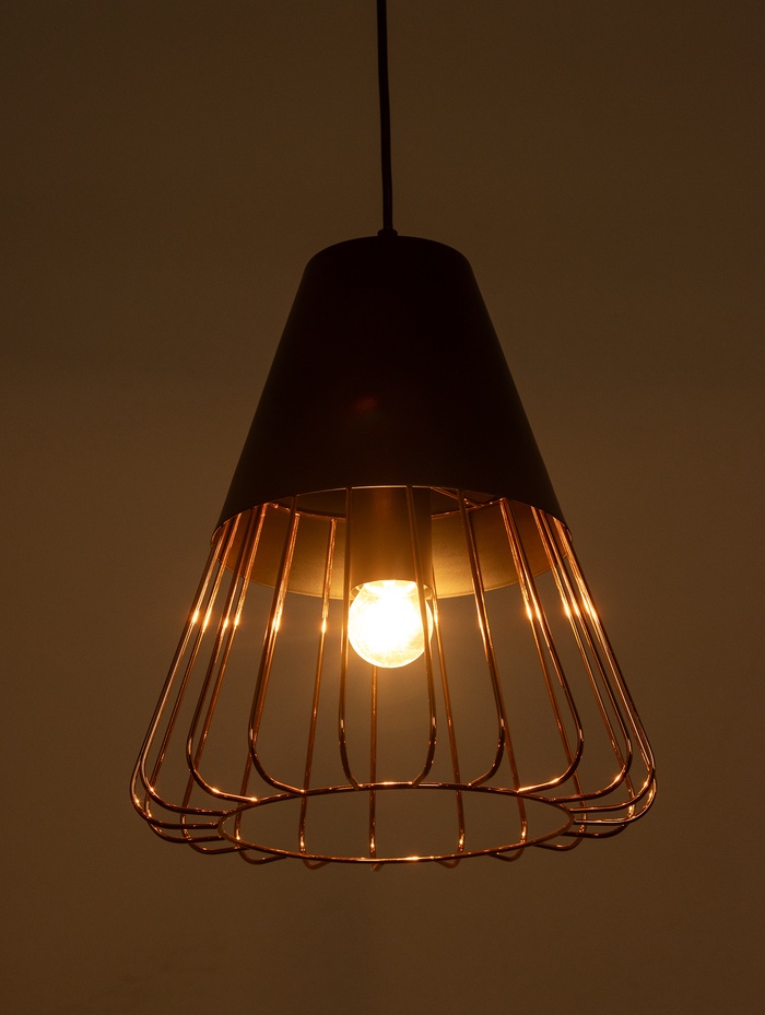 Подвесной светильник с конусным плафоном формирует направленный световой поток, идеально подходящий для акцентного и функционального освещения. Чёрный рассеиватель создаёт выразительный контраст и помогает сконцентрировать свет в нужной зоне, добавляя интерьеру глубину и графичность. Металлическое основание в чёрном цвете подчёркивает индустриальный характер модели и гармонично вписывается в интерьеры в стиле лофт. Лаконичная форма делает светильник универсальным — он легко комбинируется с разными материалами и фактурами. Цоколь E27 даёт свободу выбора лампы, позволяя адаптировать яркость и температуру света под конкретные задачи.