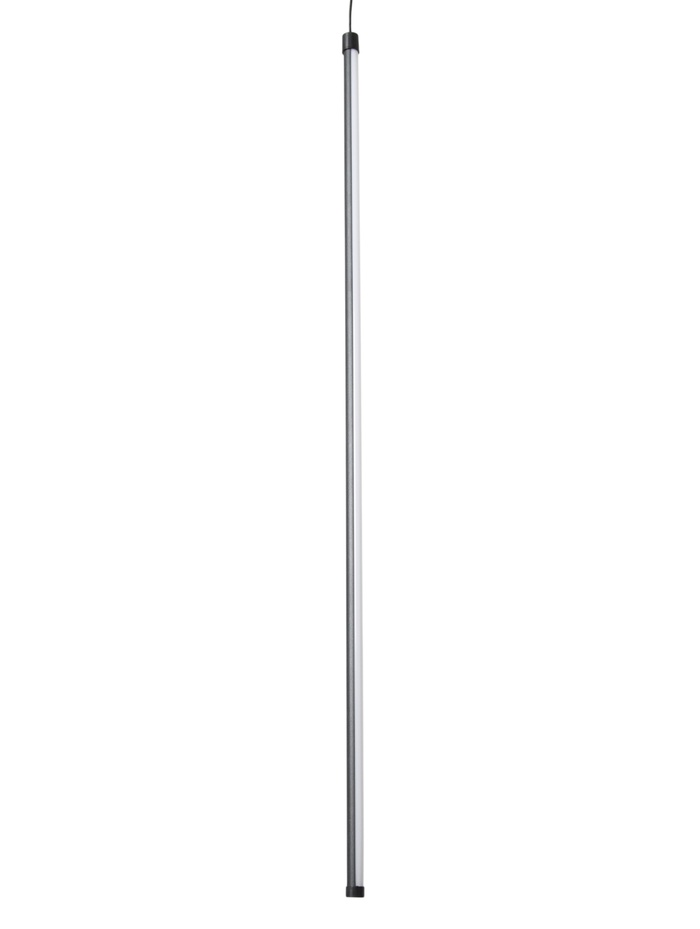 Подвесной светильник с вытянутым цилиндрическим корпусом создаёт чёткий и направленный световой акцент, подчёркивая геометрию пространства. Чёрное матовое исполнение выглядит строго и современно, легко вписываясь в минималистичные и лофт-интерьеры.