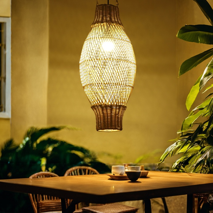 Этнический светильник ручной работы сделан из экоматериала — ротанга (очищенных и высушенных стеблей лиан).