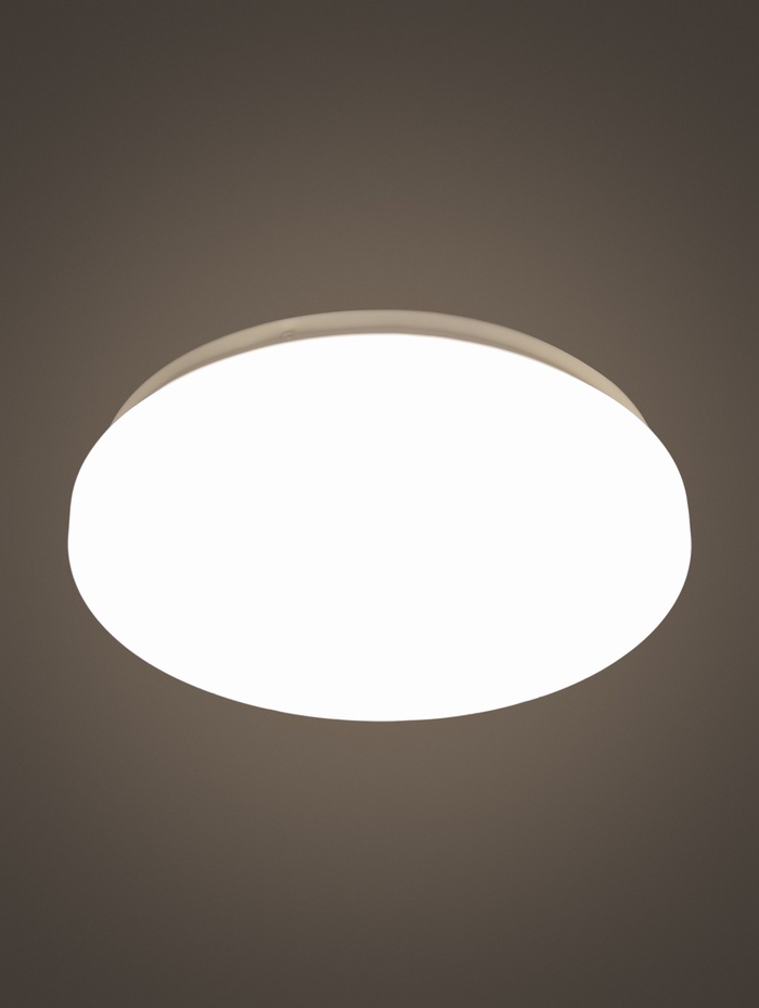 Тонкий корпус высотой всего 5 см практически не выступает от потолка, благодаря чему светильник выглядит аккуратно и современно. Встроенный LED-модуль на 18 Вт работает стабильно, а пластиковый рассеиватель равномерно распределяет свет, делая его мягким и приятным для ежедневного использования.
