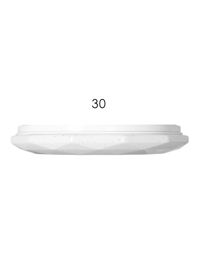 Компактный корпус высотой 5,5 см аккуратно прилегает к потолку, что делает модель удобной для помещений с ограниченной высотой. Круглая форма диаметром 30 см обеспечивает равномерное распределение светового потока, а встроенные светодиоды гарантируют стабильную работу без необходимости обслуживания.