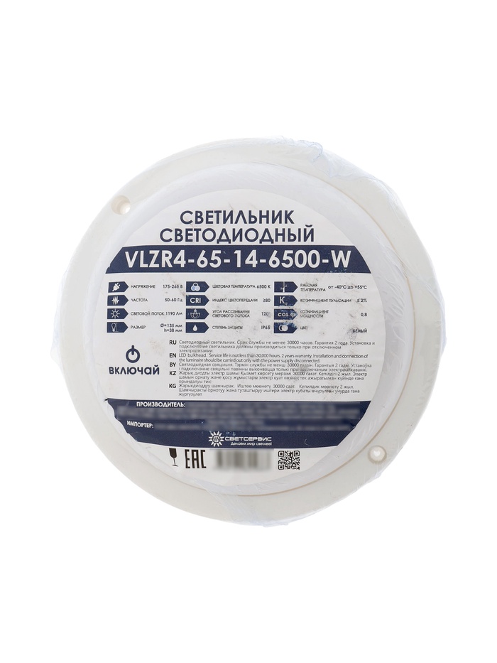 Светильник светодиодный Включай герметичный, 14 Вт, 1190 Лм, IP65, 6500К, круг, белый