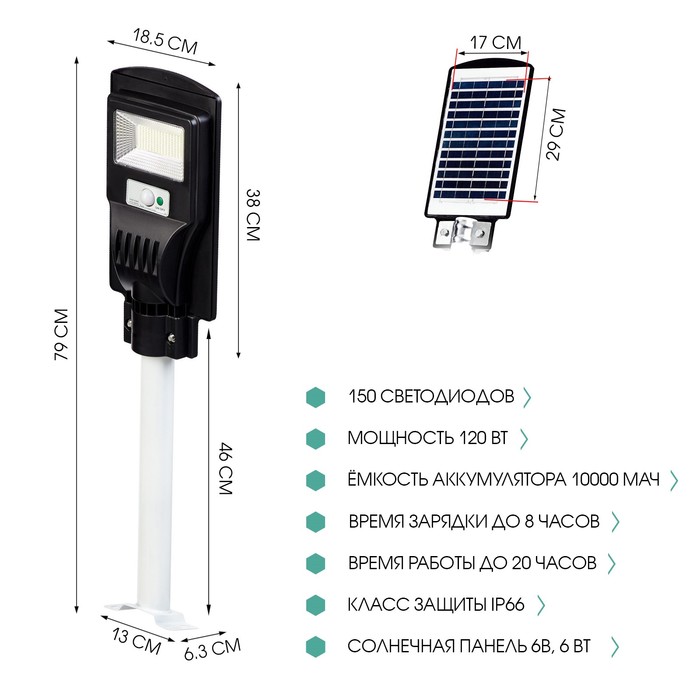 - Экономичность - бесплатное освещение благодаря солнечной батарее.