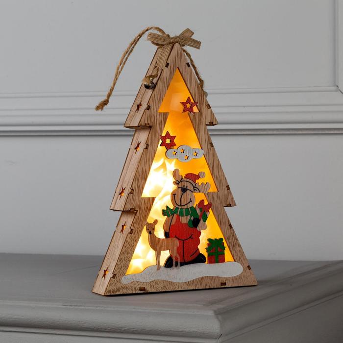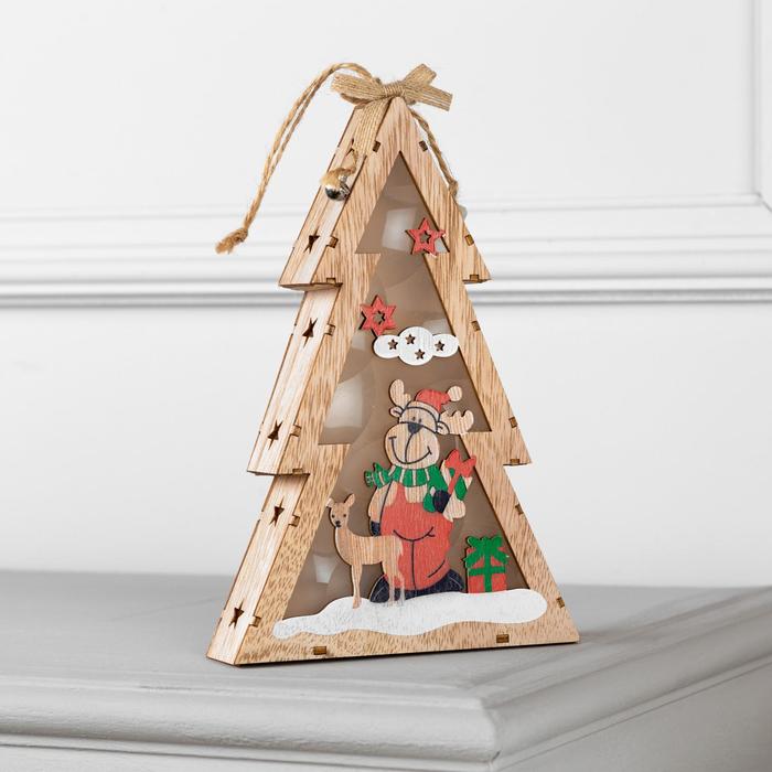 Светодиодная фигура «Ёлка с оленем» 14 × 22.5 × 4 см, дерево, батарейки АААх2 (не в комплекте), свечение тёплое белое