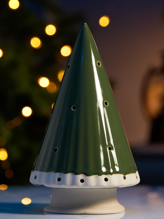 Элегантная керамическая зелёная ёлочка станет стильным дополнением к вашему праздничному декору. Эта маленькая статуэтка создаст уютную новогоднюю атмосферу благодаря мягкому тёплому белому свету, создаваемому встроенным светодиодом. Работая от батареек, эта ёлка позволяет вам без труда разместить её в любом месте вашего дома, где она будет радовать вас своим постоянным свечением.