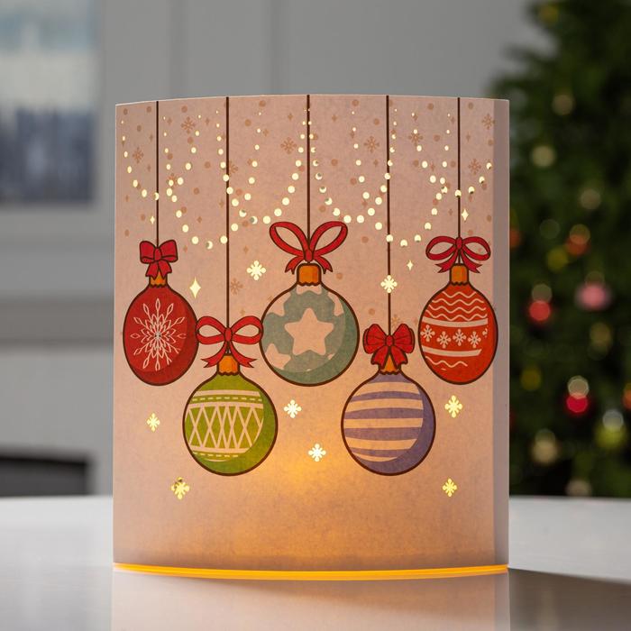 Светодиодная фигура «Ёлочные шары» 17 × 20 × 8 см, картон, батарейка ААх2 (не в комплекте), свечение тёплое белое