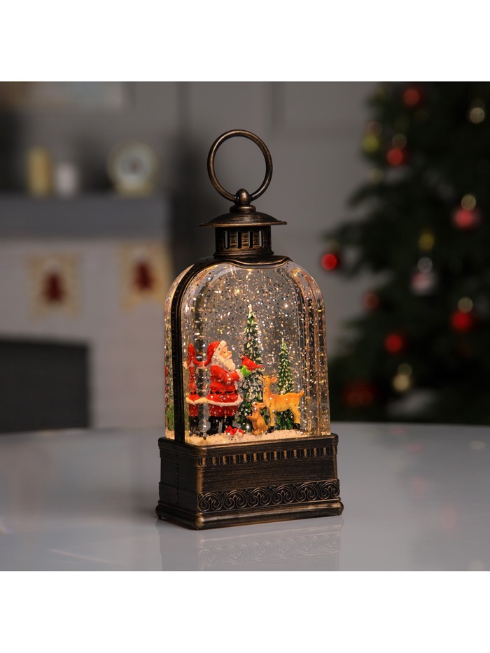 Светодиодная фигура «Фонарь с Дедом Морозом» 10.5×21×6.5 см, пластик, от батареек АААх3, USB, свечение тёплое белое
