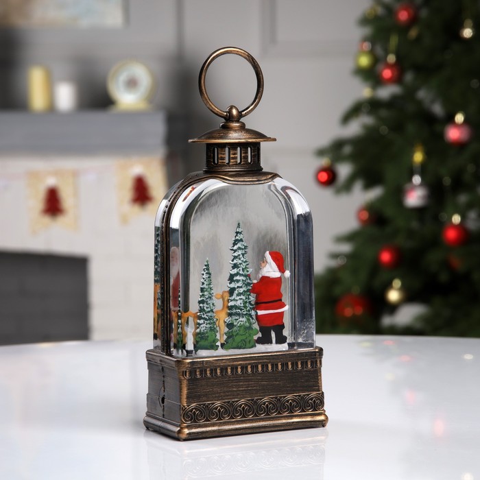 Светодиодная фигура «Фонарь с Дедом Морозом» 10.7×20.5×6.2 см, пластик, батарейки ААх3 (не в комплекте), USB, свечение тёплое белое