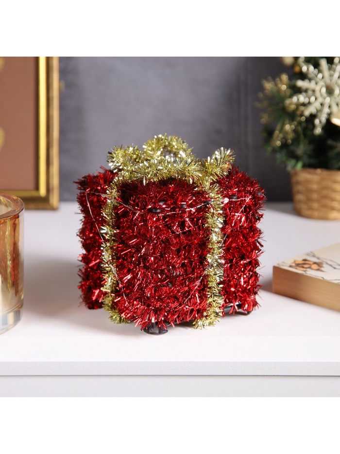 Светодиодная фигура из мишуры «Подарок красный» 12×9 см, 10 LED, батарейки AG10×3 (в комплекте), свечение тёплое белое