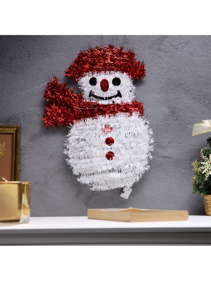Светодиодная фигура из мишуры «Снеговик» 32×22 см, 20 LED, батарейки AG10×3 (в комплекте), свечение тёплое белое