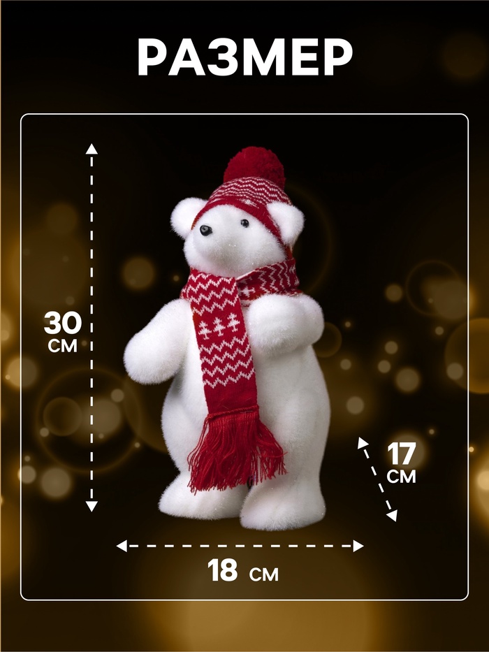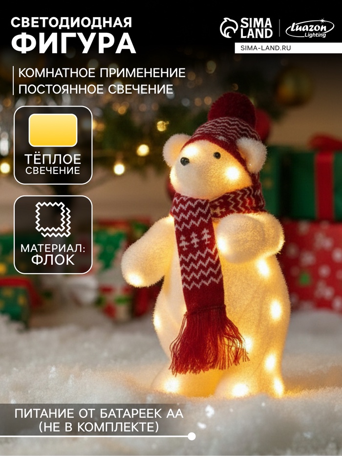 Светодиодная фигура «Мишка в шапке» 18 × 30 × 17 см, флок, батарейки ААх2 (не в комплекте), свечение тёплое белое