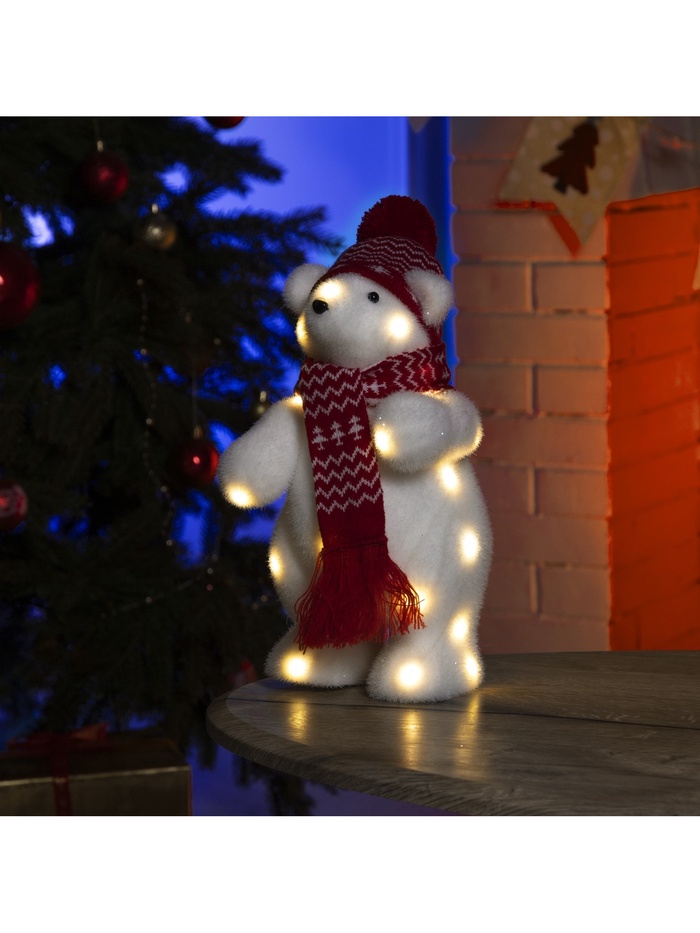 Светодиодная фигура «Мишка в шапке» 18×30×17 см, флок, батарейки ААх2 (не в комплекте), свечение тёплое белое