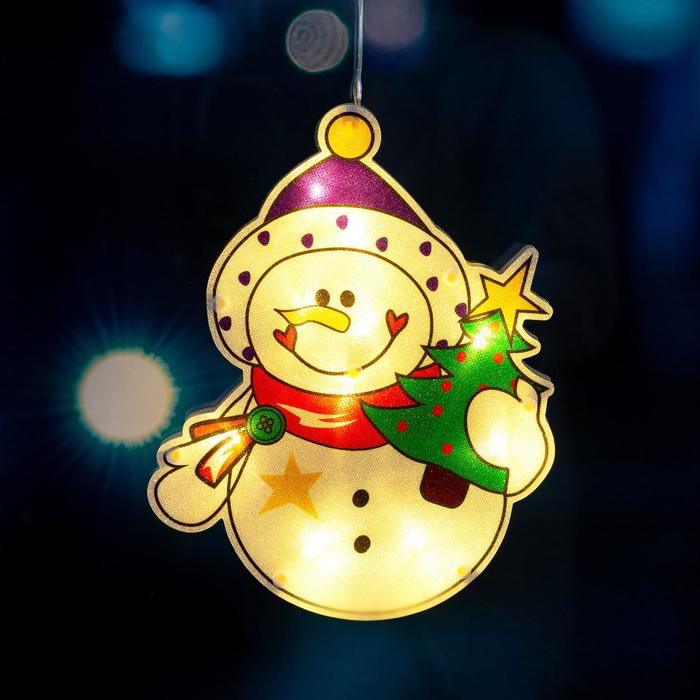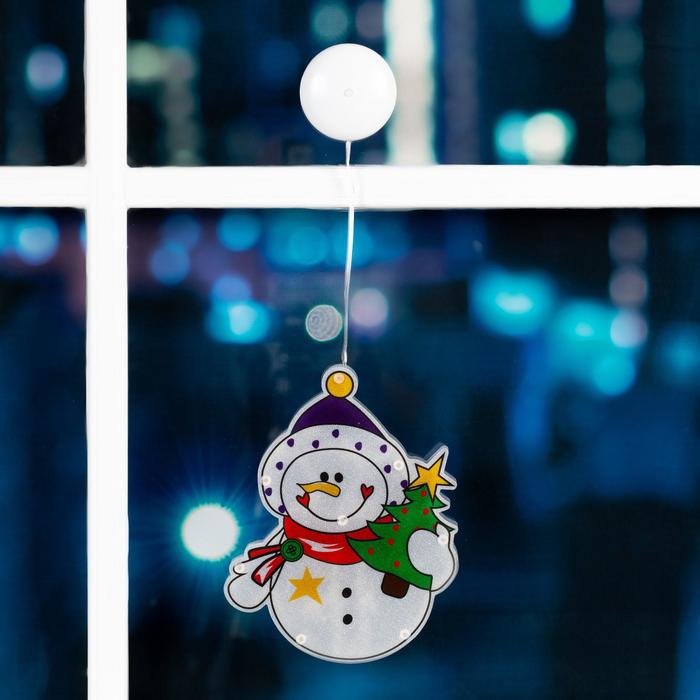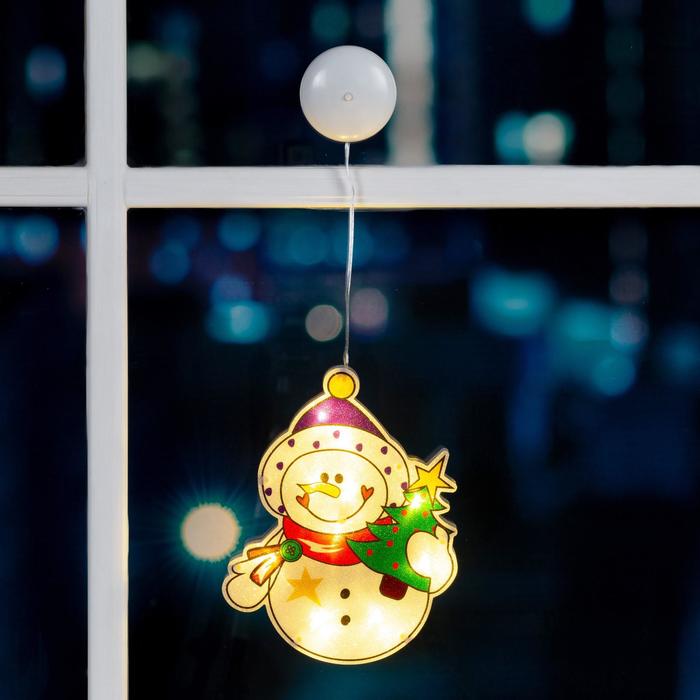 Светодиодная фигура на присоске «Снеговик» 19 × 22 см, пластик, батарейки АААх3 (не в комплекте), свечение тёплое белое