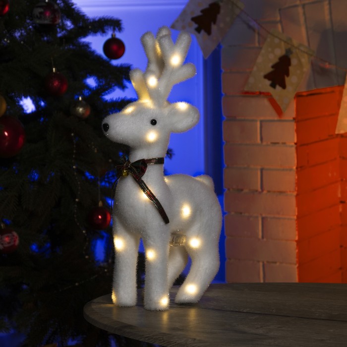 Светодиодная фигура «Олень» 26 × 45 × 12 см, флок, батарейки ААх2 (не в комплекте), свечение тёплое белое