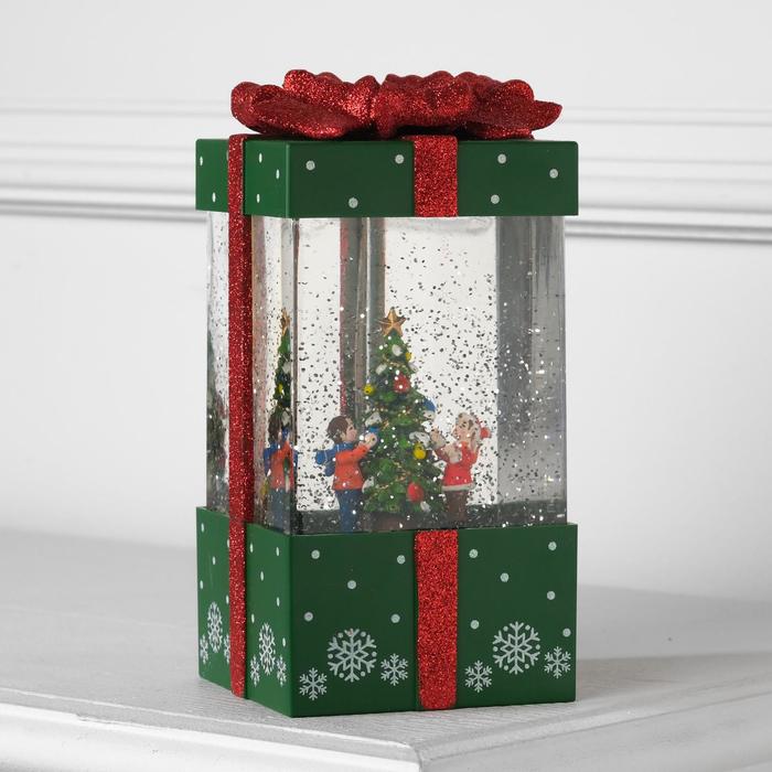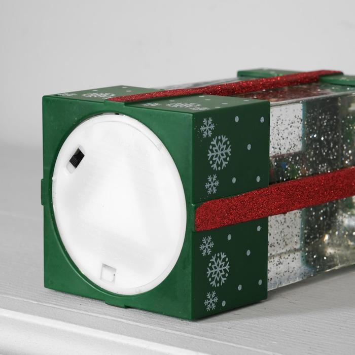 Светодиодная фигура «Подарок зелёный» 10 × 19 × 10 см, пластик, батарейки ААх3 (не в комплекте), USB, свечение тёплое белое